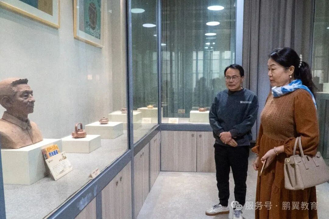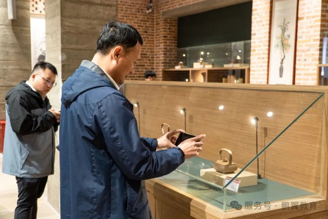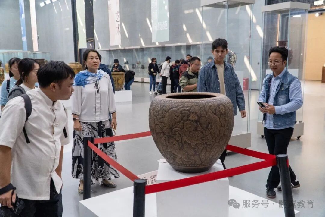 10月25日上午,教师们参观宜兴陶瓷博物馆。馆内丰富的藏品系统展示了宜兴陶瓷的发展历程,从古陶器到现代精品,教师们深入学习了陶瓷艺术的文化内涵和美学价值。通过专家讲解,大家进一步明确了坭兴陶与紫砂陶的异同,为专业比较研究积累素材。
