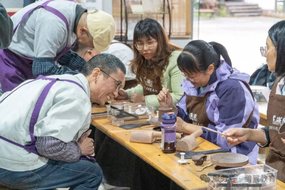 下午,教师们前往葛盛陶庄,体验紫砂制作工艺。在陶庄专家的指导下,教师们亲手尝试了拍泥、雕刻等环节,感受紫砂艺术的独特魅力。与葛韬的交流中,教师们学习了品牌运营和市场推广策略,为坭兴陶产品的市场化探索新路径。大家纷纷表示,实践体验让理论知识活了起来,增强了教学的生动性。
